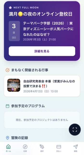 目がさえてしまう満月の夜は、学校の机では学べない、刺激的な “世界の謎” に手を伸ばす。プログラムで仲良くなったあの子たちと、自分のスマホでkahoot!クイズ勝負。LINEのスクール生コミュニティも。