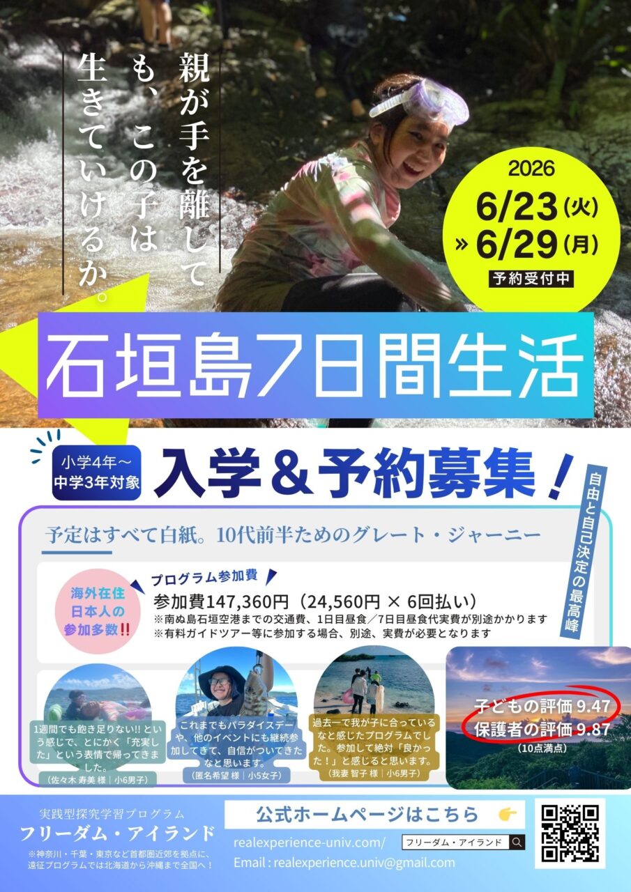 “完全な自由” を使いこなせるか?「石垣島7日間生活」/野生の視線、命の気配……国内最高峰を知る「世界自然遺産(知床/奄美大島)野生動物探し」(年3〜4回開催/3〜7日間修学旅行)