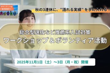 総合型選抜など推薦系入試対策ワークショップ&ボランティア活動|2025年11月1日(土)〜3日(月・祝) – 募集要項